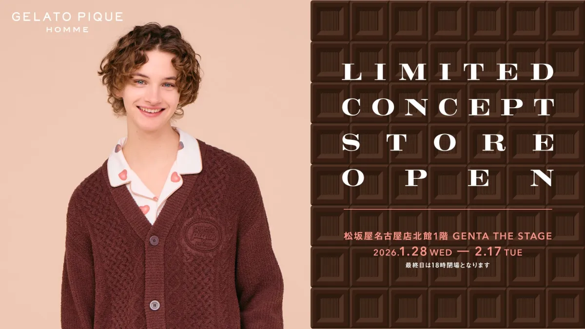 2026年1月28日(水)から2月17日(火)の期間、松坂屋名古屋店の北館1Fに「GELATO PIQUE HOMME(ジェラート ピケ オム)」のリミテッドコンセプトストアがオープンします。この特別なストアでは、バレンタインコレクションや春の新作など、豊富なラインアップが楽しめます。