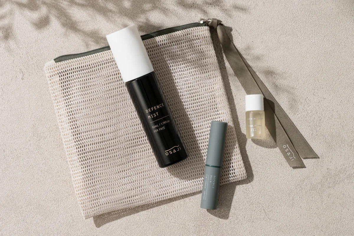 OSAJIは、敏感肌を考えたスキンケアを追求しているブランド。花粉や環境ストレスは敏感肌にとって大敵ですが、これらの製品を使うことで、少しでも快適に過ごせるのではないでしょうか。さらに、軽やかなメッシュポーチも付いており、持ち運びも便利です。自分のスキンケアをしっかりサポートするアイテムを手に入れて、花粉シーズンを乗り切りましょう。