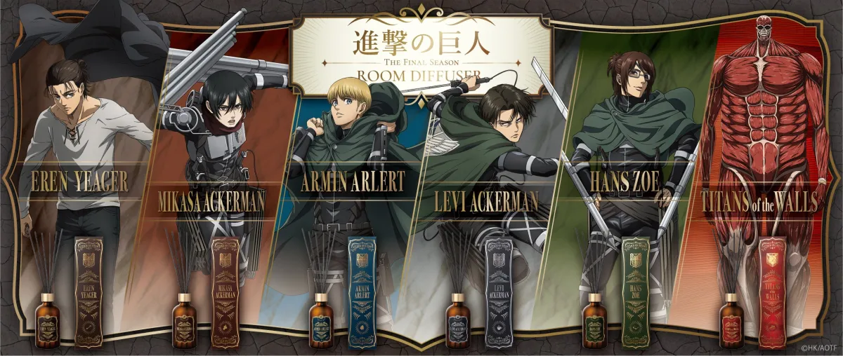 このディフューザーがあれば、あなたの部屋が『進撃の巨人』の世界に包まれることでしょう。推しの香りに満ちた空間で、特別なひとときをお楽しみください!