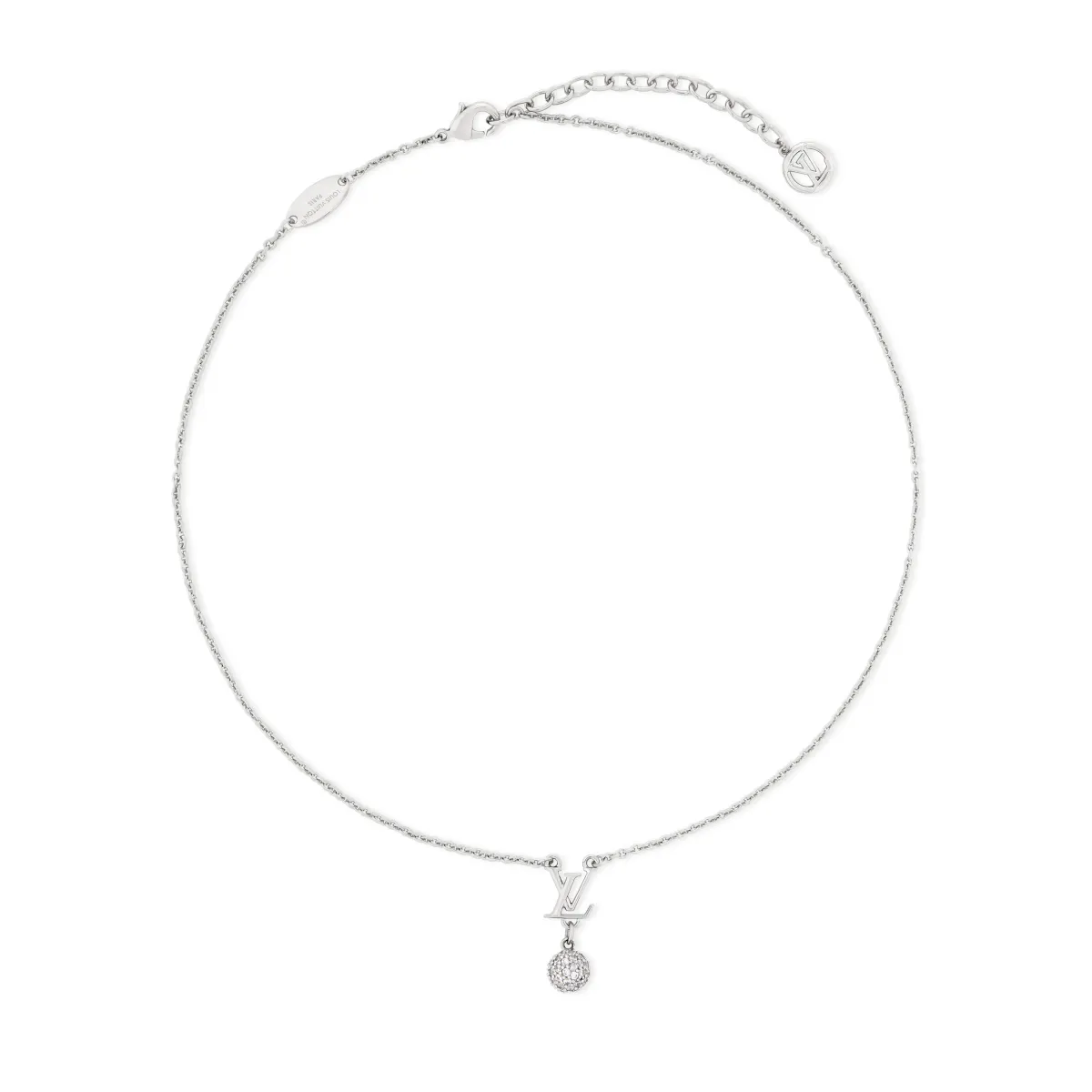 このネックレスは、シルバーカラーのメタルを用いて繊細に模られており、華やかさとともにメゾンのタイムレスなエレガンスを感じさせます。ストラスが散りばめられた精緻なビーズとLVイニシャルのペンダントが組み合わさったデザインは、特別なシーンにぴったり。軽量で着け心地の良さにもこだわっており、一晩中快適に過ごせます。