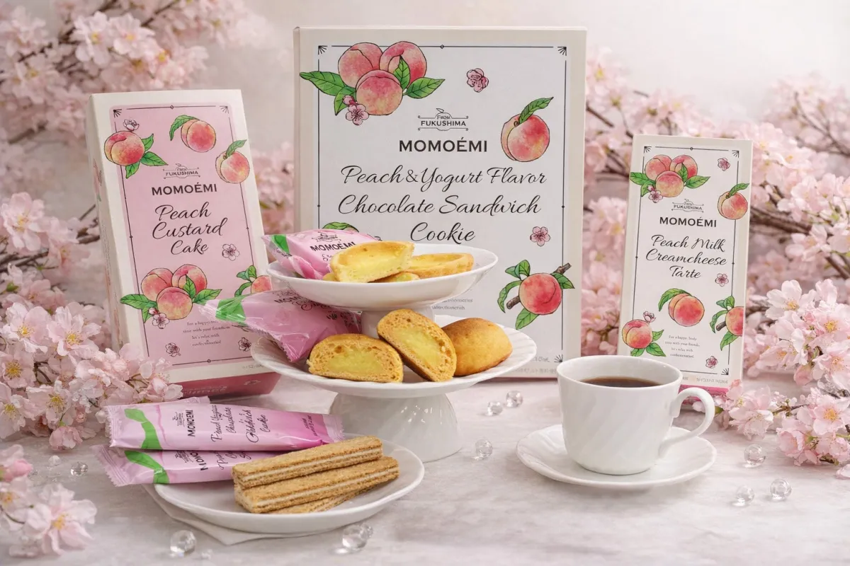 桃の美味しさを多くの人に届けたくて、新しいお土産として開発されたスイーツシリーズ「MOMOÉMI」が、4月6日(月)に新発売されました。福島の桃にこだわったこの商品は、素材からパッケージに至るまで、桃の魅力が詰まっています。