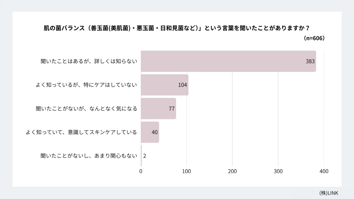 - - 「菌バランス」の認知度87%:この数字は、現在「菌ケア」が広まりつつあることを示していますが、詳細に知っている人はまだ少ないようです。