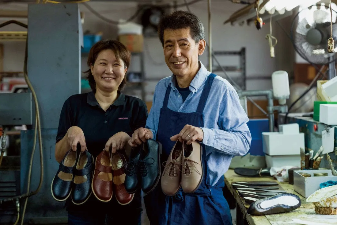 長田の靴メーカーとのコラボから生まれた、初のレザースニーカーが完成しました。靴デザイナーの森下愛さんと職人の前城勝さんの手によるこのスニーカーは、快適な履き心地を追求し、丸みを帯びたトウと滑りにくいゴム底が特徴。やわらかな革は足全体を包み込み、履くたびに自分だけのフィット感を楽しめます。