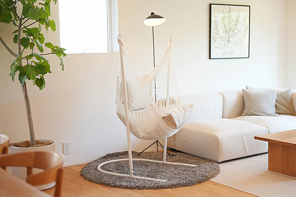 ハンモックに身を委ねると、心地よい揺れが身体を包み込み、瞬時にリラックスした状態へと導いてくれます。忙しい日常の中で、わずかな空き時間にも、ゆらゆら揺れて心を解き放つ特別なスロータイムが楽しめます。このハンモックチェアは、ただ座るだけでなく、心と体をリセットする至福の時間を提供してくれるのです。