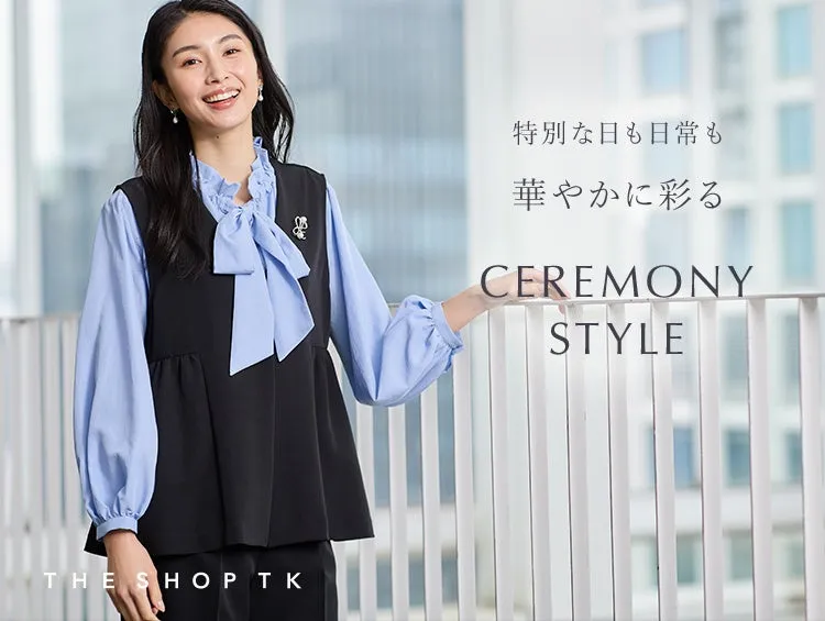 特集ページでは、特別なハレの日のためのアイテムはもちろん、それが過ぎた後にもカジュアルに楽しめるセレモニーウェアが紹介されます。例えば、着るだけでおしゃれがぐっと増すペプラムジレのセットアップや、ワーキングスタイルにもぴったりなノーカラージャケットなど、様々なシーンで活躍するアイテムがラインナップ。