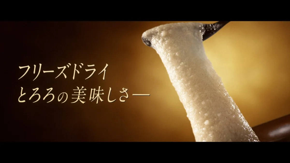 この新CMは、フリーズドライ国産長芋とろろの便利さを表現するために、哀愁漂うおろし金が登場します。そこから物語は進展し、驚きの展開が待ち構えていることが示唆されます。水を注ぐことで、驚くべき復活を遂げる様子は、まるで映画の予告編のようにドラマチックに描かれています。