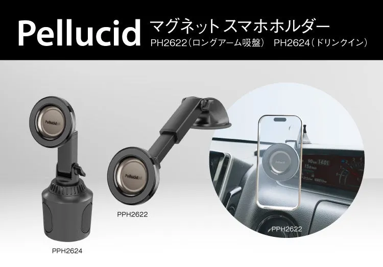 今回ペルシードが発売したのは、吸盤タイプの『マグネットスマホホルダー ロングアーム吸盤(PH2622)』と、ドリンクホルダーに設置できる『マグネットスマホホルダー ドリンクイン(PH2624)』の2つです。これにより、車内でのスマートフォンの設置方法が広がり、お好みに合わせて選べるようになりました。