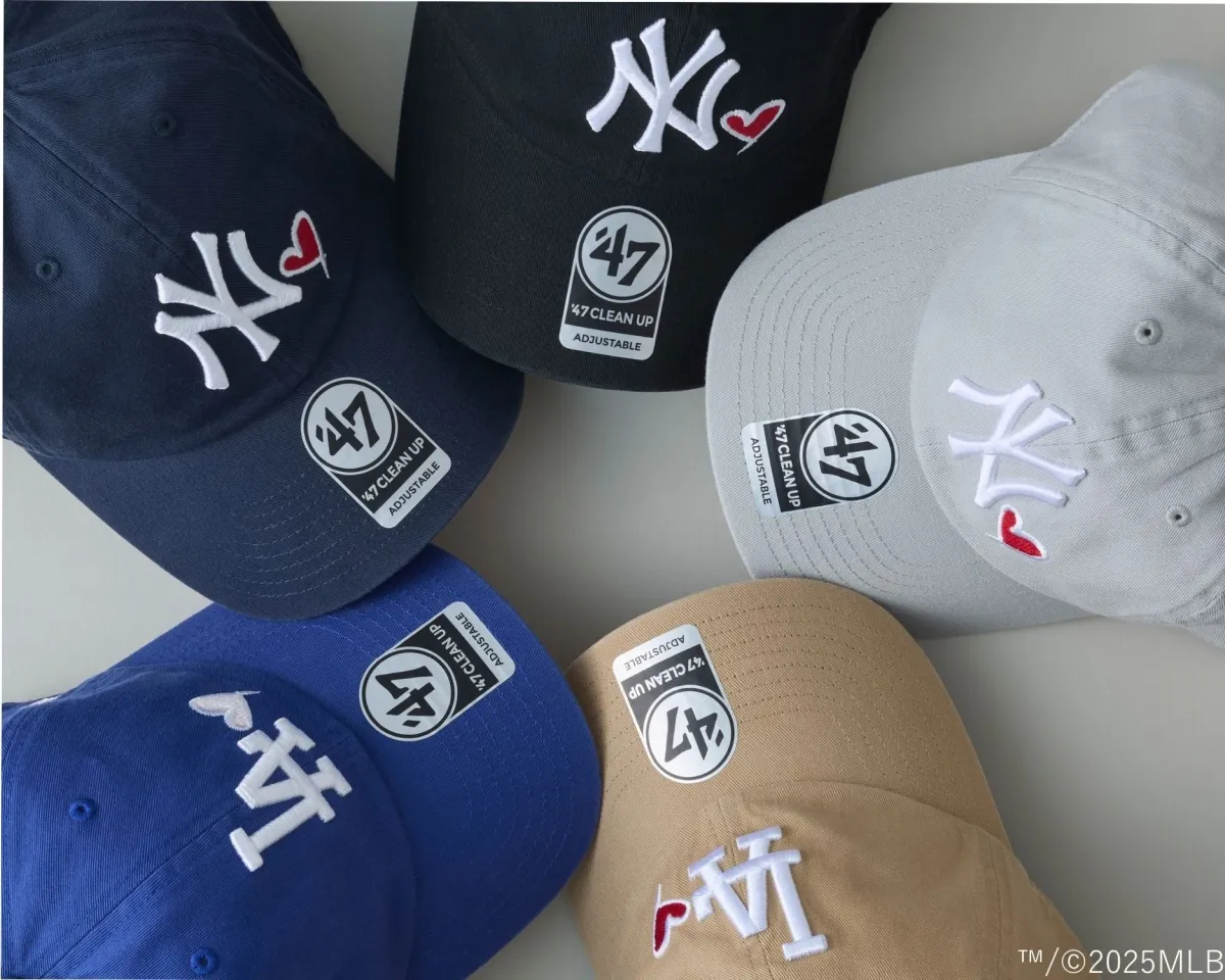 カジュアルライフスタイルブランドの’47(フォーティーセブン)から、人気のキャップシリーズ「CLEAN UP」に新デザインが加わりました!1947年にアメリカのボストンで生まれたこのブランドは、長年にわたりファッション愛好者に支持されています。今回の新作は、MLBのニューヨーク・ヤンキースとロサンゼルス・ドジャースの球団ロゴに、可愛らしいハートのアイコンを添えたユニークなデザインが特徴です。これにより、ベーシックなキャップに、柔らかな印象をプラスしました。
