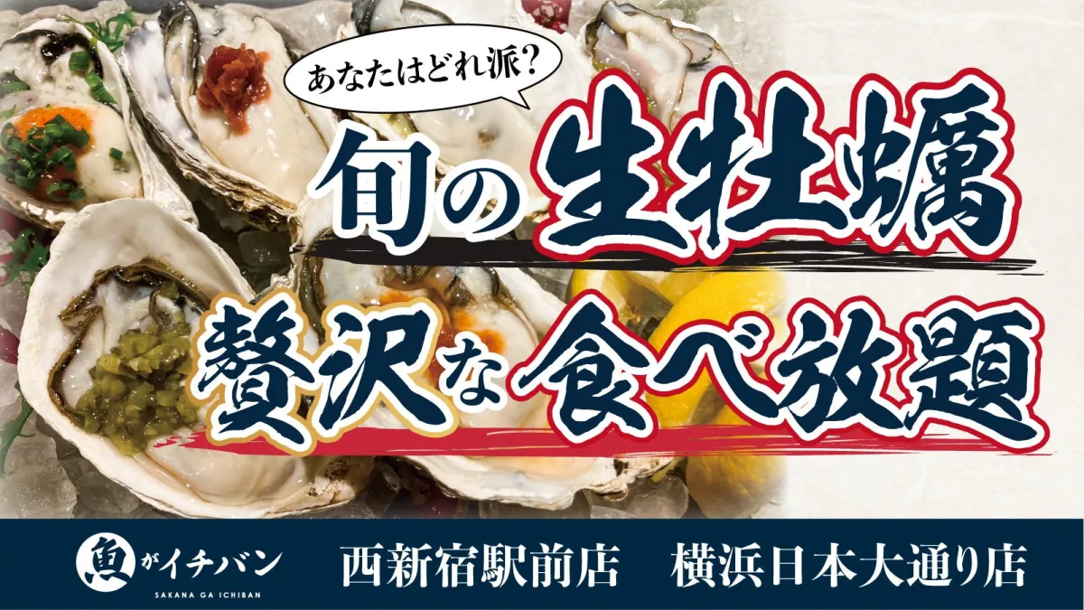 旬の素材を活かした海鮮料理が人気の「魚がイチバン」。この度、横浜・新宿の2つの店舗で、豊洲市場から直送された生牡蠣の食べ放題プランが新たにスタートします!2026年1月より、横浜日本大通り店と西新宿駅前店の2店舗限定で提供されるこのプランは、まさに牡蠣好きにはたまらない内容となっています。