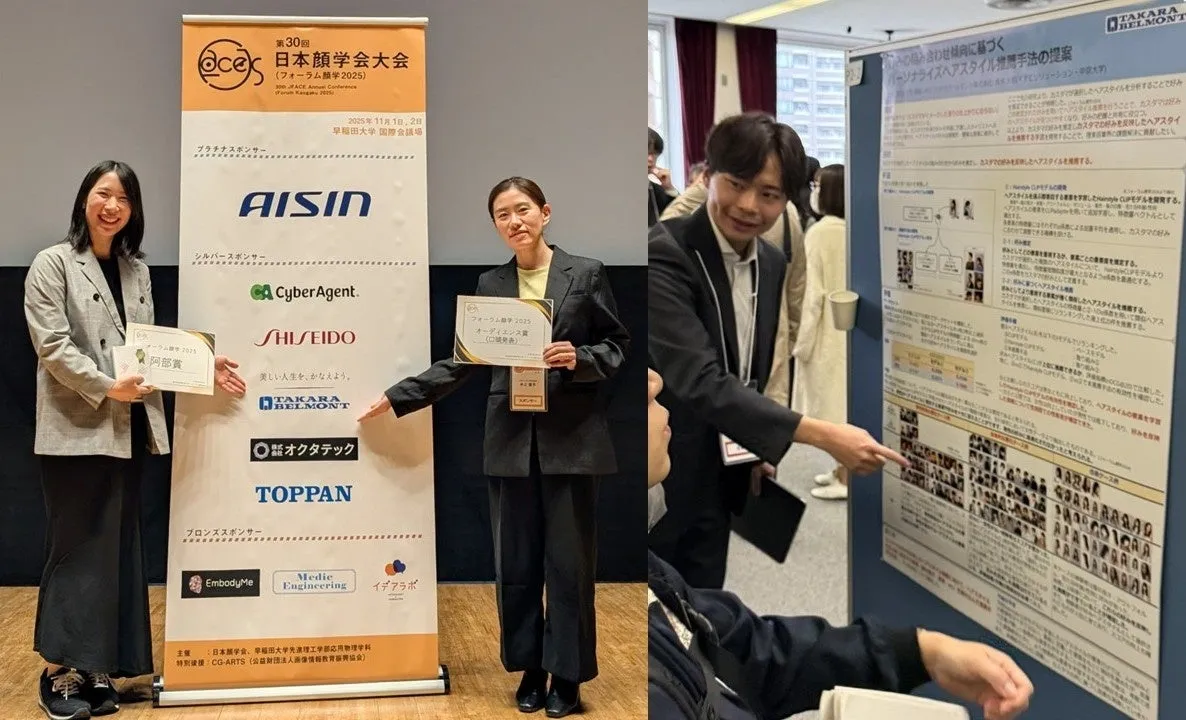 2025年11月1日から2日にかけて開催された「第30回日本顔学会大会」において、タカラベルモントが名誉あるオーディエンス賞と阿部賞を受賞しました。この受賞はタカラベルモントにとって初の快挙で、当社が発表した中で過去最多の3題が公表されました。この成功は、美容と科学が交錯する新たな地平を切り開く一助となるでしょう。