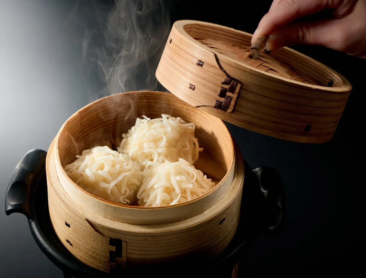 豆腐をベースにしたこのしゅうまいは、ふんわりとした食感とクリーミーな口当たりが特徴。肉類に比べて軽やかな印象がありますが、しっかりとした満足感を与えてくれます。体に優しいだけでなく、味も自信のある一品です。