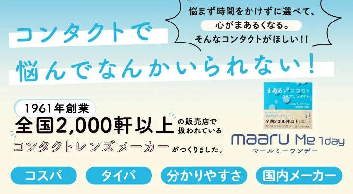 「maaru Me 1day」は、全てのコンタクト初心者にとって、新たな選択肢を提供する商品です。これからの春、新生活をより充実させるために、ぜひ一度お試しください。あなたのライフスタイルをサポートする、心強いパートナーになることでしょう。