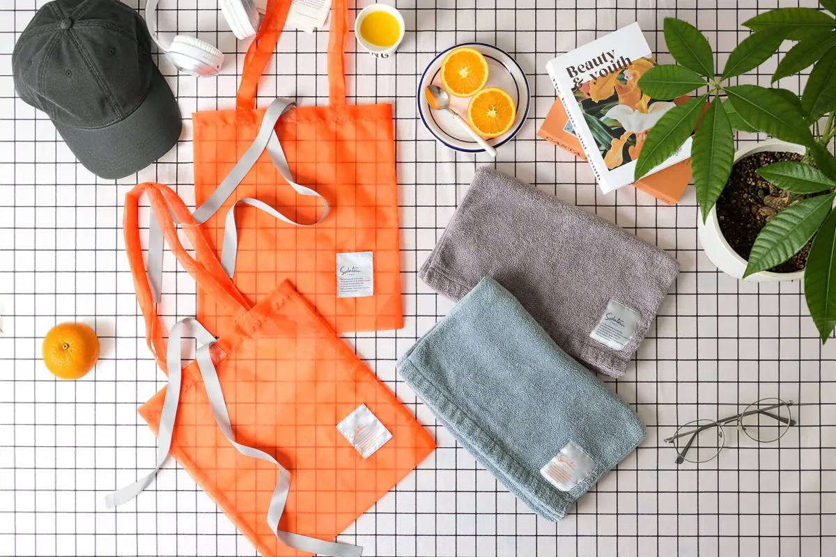 CHEER LOOMのパッケージには、笑顔と元気を象徴するオレンジのオーガンジートートバッグが使用されています。このパッケージは、シンプルながらエレガントさを感じさせるデザインで、贈り物にも最適です。オーガンジートートバッグは、エコバッグとしての利用も可能で、実用性とおしゃれを兼ね備えています。