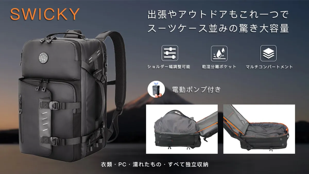 最近、バックパックに求められる機能性が進化してきました。その中でも特に際立っているのが、SWICKYの最新モデルです。リュックの形をしながら、実際にはスーツケース並みの大容量を誇るこのバックパックは、旅行や出張だけでなく、日常的にも大活躍すること間違いありません。