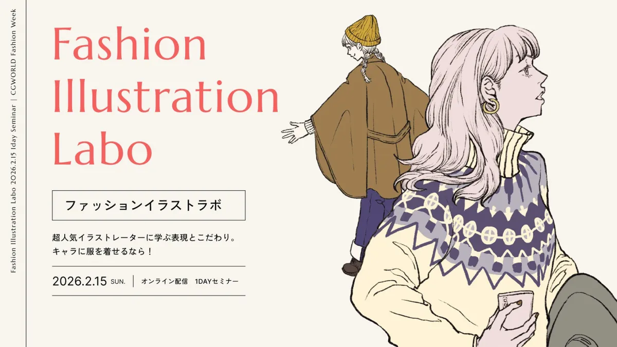 2026年2月15日(日曜日)、株式会社ボーンデジタルが主催するオンラインイベント「Fashion Illustration Labo」が開催されます。ファッションとCGの融合をテーマにした「CGWORLD Fashion Week」の一環として行われるこのセミナーでは、人気イラストレーターたちがその独自のスタイルと表現技法を深く掘り下げ、参加者に新たなインスピレーションを提供します。
