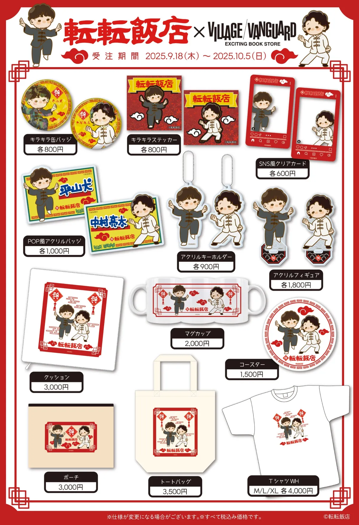 2025年9月18日(木)に、人気コントユニット『転転飯店』とヴィレッジヴァンガードによる限定コラボグッズのオンライン受注販売が開始されます。このコラボは、多くのファンからの期待が寄せられ、遂に実現しました。ここでは、魅力的な限定アイテムの詳細を徹底紹介します。