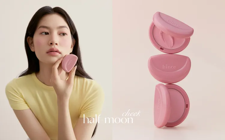 韓国の人気メイクブランドhince(ヒンス)から、画期的なチークが登場しました。その名も「ハーフムーンチーク(クリームトゥパウダー)」。化粧品販売を手掛けるVIVAWAVE Co.,Ltd.が手掛けたこのアイテムは、クリームの潤いとパウダーの軽さを絶妙に融合させた新しいテクスチャーが特徴です。