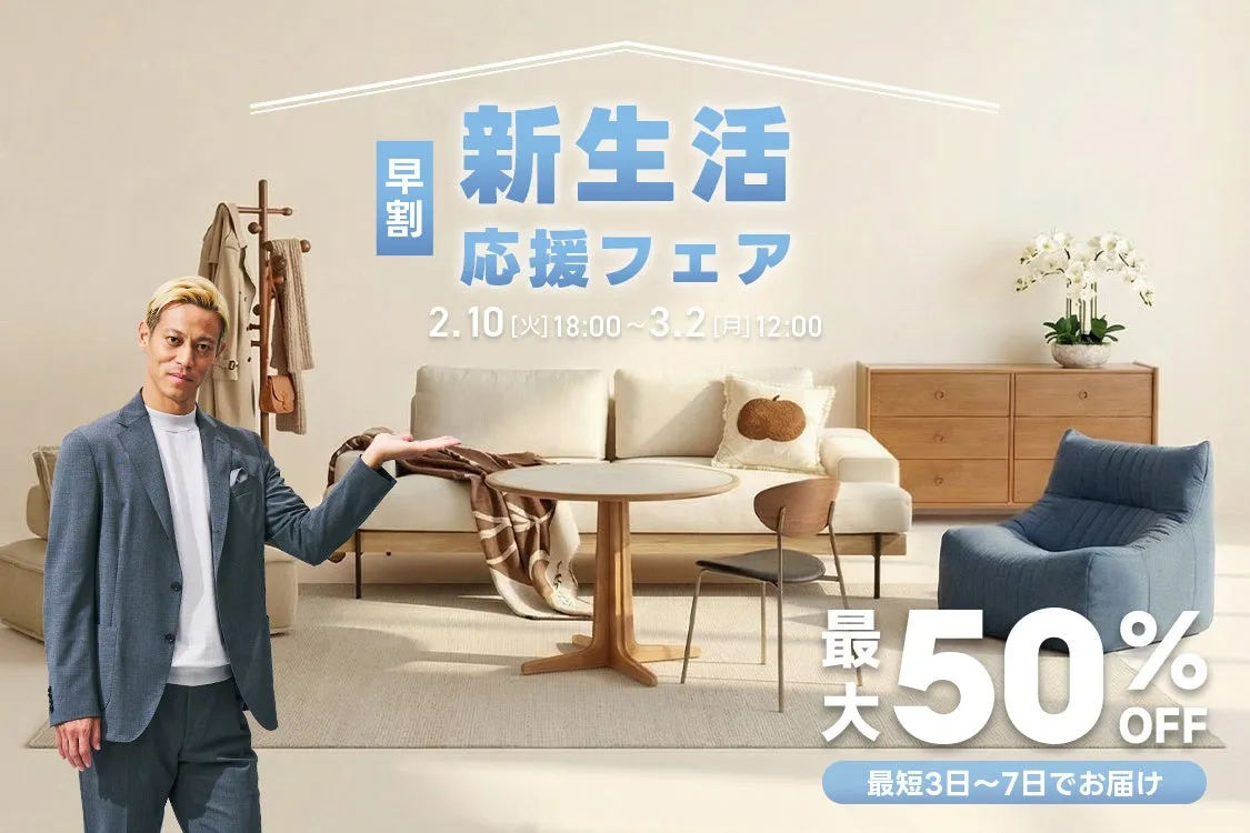 新しい季節の到来とともに、新生活を始める準備を進める方も多いのではないでしょうか。そんな皆さんに朗報です! 2026年2月10日から始まる「早割!新生活応援フェア」では、お得な特典盛りだくさんのCAGUUUが、自宅のインテリアをスタイリッシュに彩る家具を提案します。