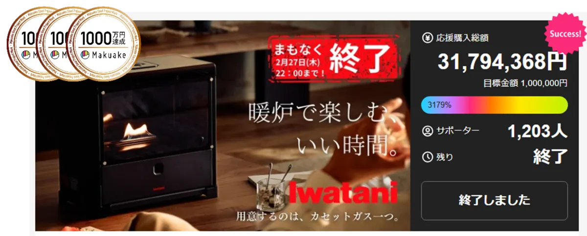 「MYDANRO」は、先行販売としてMakuakeで行われ、驚くべきことにわずか数日で目標金額の1,000万円を大きく突破し、最終的には3,000万円以上の応援購入を達成しました。購入者からは「炎のゆらぎが癒される」や「ガス式でメンテナンスが不要なのが嬉しい」との高評価が寄せられています。この成功を受けて、より多くの人々に「炎のある暮らし」を届けるため、一般販売を開始したのです。