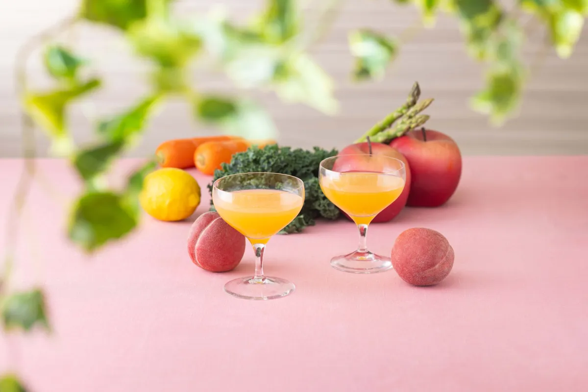 このジュースは、野菜汁と果汁が50%ずつ含まれた100%のミックスジュースで、砂糖不使用。毎日必要とされるビタミンCを一日の摂取基準に達する量が含まれており、健康志向の方にもおすすめです。朝食やリフレッシュタイムにぴったりの一杯です。