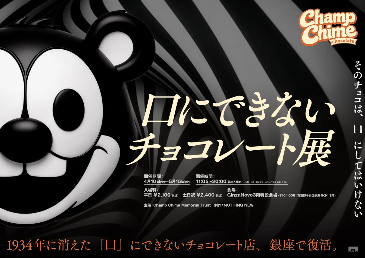 2026年4月10日から開催される新作企画展『Champ Chime Chocolate(チャンプチャイムチョコレート)』が、映画レーベルNOTHING NEWによって特設会場で実施されます。銀座で行われるこの展示は、過去のチョコレートの魅力や歴史を伝える貴重な機会です。今回は、チャンプチャイムチョコレートの由来や展示内容について詳しく紹介します。