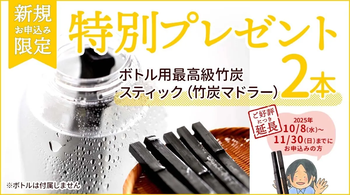 高知県の虎斑竹専門店「竹虎」が、定期購入の新規申し込みで最高級竹炭スティックをプレゼントするキャンペーンを、2025年11月30日まで延長します。このキャンペーンは、竹炭の優れた特性を活かしたアイテム「竹炭マドラー」を新規定期購入者全員に提供するものです。