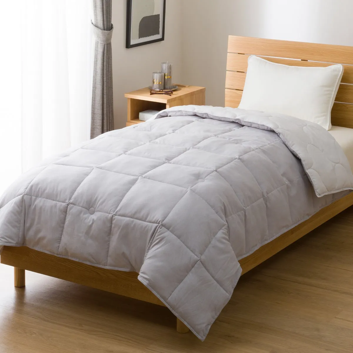 快適な睡眠をサポートするためには、ふとんのお手入れも重要です。「ちょうど良い湿度調整掛ふとん」は洗濯機で丸洗いできるため、手軽に清潔を保つことができます。さらに、カバーなしで使用できるため、手間がかかりません。また、側生地には防ダニと抗菌防臭加工が施されているため、安心して長く使い続けられます。