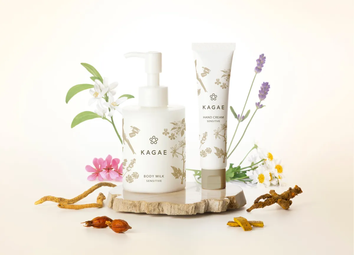 このシリーズには「カガエ ハンドクリーム センシティブ」と「カガエ ボディミルク センシティブ」が含まれています。どちらも、肌に優しい成分を厳選して配合し、敏感肌をすこやかに保ちながらも美しさを引き出すことを目指しています。