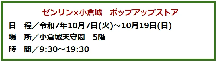 小倉城とゼンリンのコラボ企画は、さまざまな楽しい要素が詰まったイベントです。特別なオリジナル商品や貴重な展示を楽しむチャンスをお見逃しなく。ぜひ、この機会に小倉城を訪れて、思い出に残るひとときをお過ごしください。