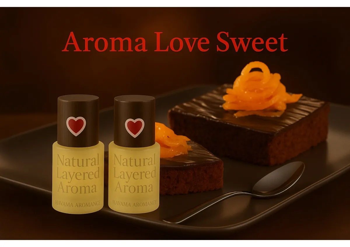 待望の新作、Aroma Love Sweetは、寒い季節にぴったりな甘く柔らかい香りを持つ2つのバリエーションが用意されています。ひとつ目の香り、「スウィートオレンジ」は、ビターオレンジとチョコレートが溶け合うような、フランスの伝統菓子オランジェットをイメージしています。ほんのりとした甘さが全身を包み込み、心まで温めてくれます。