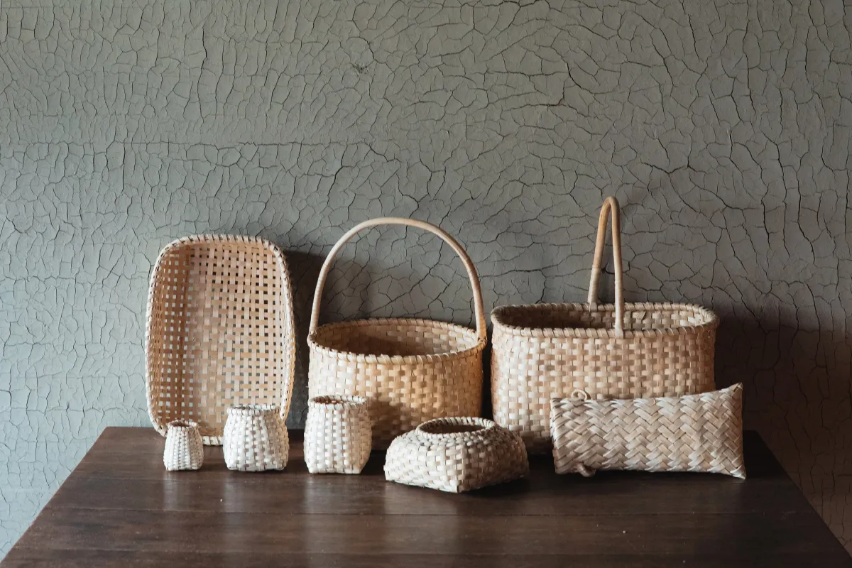 小原かごは、イタヤカエデの若木を用いて丁寧に編まれた伝統民具です。その強度としなやかさ、そして自然の色合いが魅力で、日常生活の道具として親しまれてきました。ですが、後継者不足の影響により、彼らの技術は危機に瀕しています。荒井さんは、この大切な伝統を未来に繋げるため、木かご作りだけでなく、材料となるイタヤカエデの種子を採取し、苗木を育てる「森づくり」にも力を入れています。