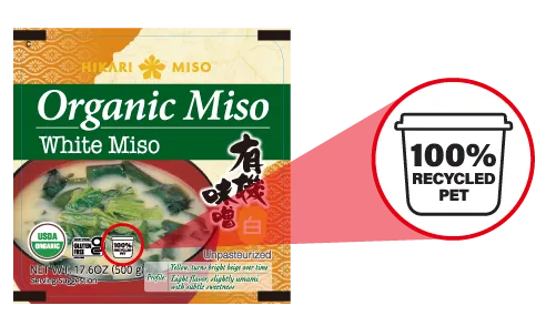 特に欧米では、環境に優しいパッケージングに対する需要がますます高まり続けています。そのため、ひかり味噌はグローバルな視点で環境意識の高い商品提供が求められる中、容器の変更を行います。新しい容器には、消費者に理解しやすいように「100%リサイクルペット」のマークがデザインされ、環境への配慮を強調しています。