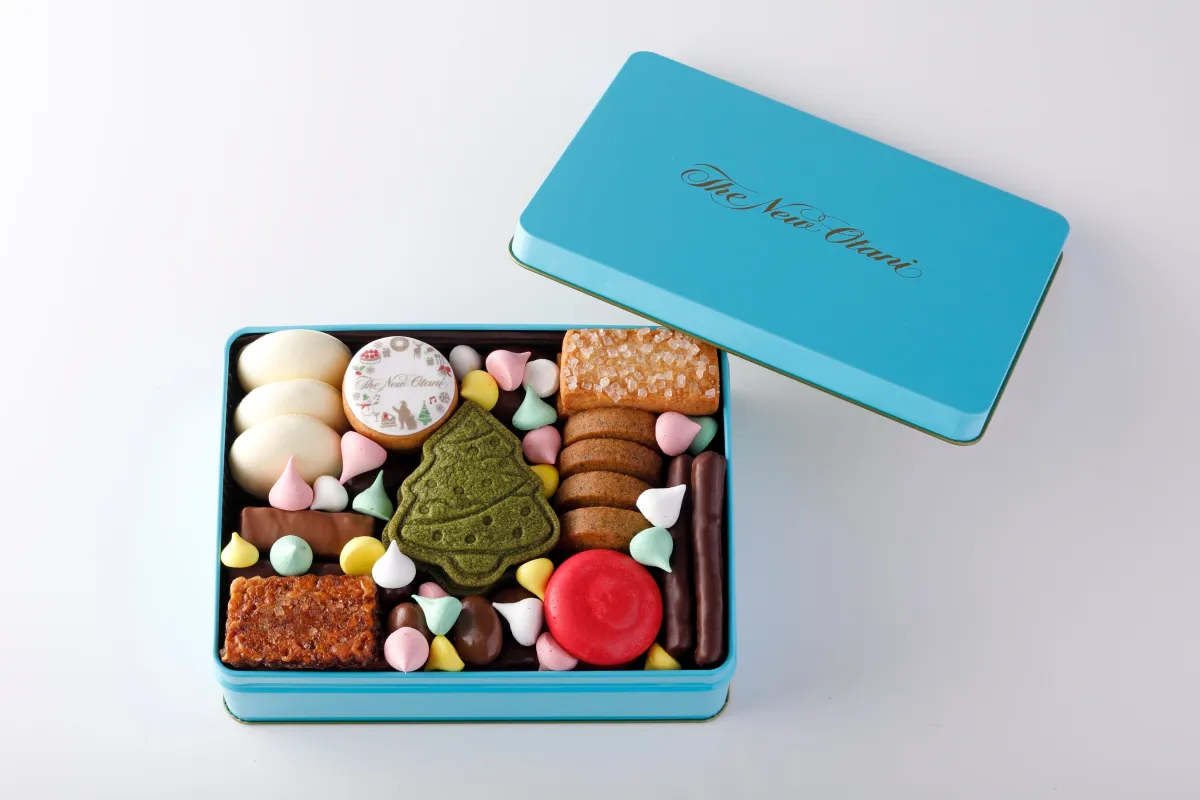 今年のクッキー缶は、特別仕様で登場します。人気の「SATSUKIチョコレート&クッキー」がクリスマスムードを引き立てる華やかなデザインに仕上げられています。日本庭園を望む美しいロケーションの中で作られたスイーツは、味わいだけでなく、その見た目でも楽しませてくれます。缶のデザインは「オータニブルー」と名付けられ、改めてホテルの魅力を伝えてくれる特別なものとなっています。