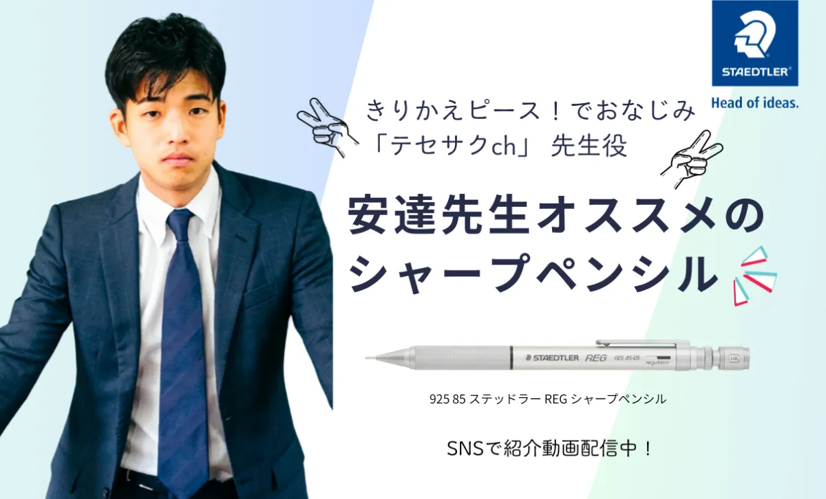 文房具ブランドのステッドラーと人気YouTuber「テセサクch」を運営する安達先生が、2025年12月17日(水)から特別なSNSプロモーションを展開します。この企画は、小中学生の学習支援を目的としており、安達先生が日々の学習シーンで役立つステッドラーのシャープペンシルを紹介する内容です。