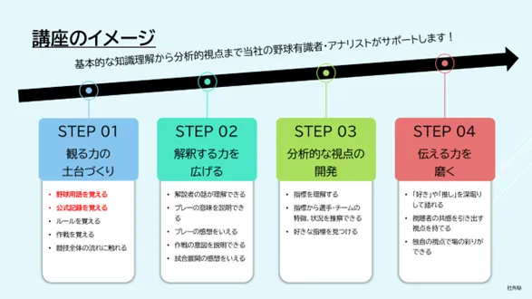 講師にはメディアでも活躍しているアナリストが就任し、各競技の専門用語やデータの見方、コメントの仕方をプログラム化して受講者に指導します。このプロジェクトは、スポーツを多面的に楽しむための新しいステップとなるでしょう。