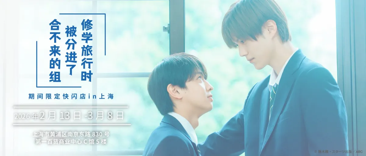 2026年2月13日から3月8日まで、中国・上海で「修学旅行で仲良くないグループに入りました」のポップアップストアが開催されます。株式会社TORICOとFirstMoverStudioの共同企画によるこのイベントは、2025年12月に日本で開催されたポップアップストアを再度リバイバルする形で実現いたしました。