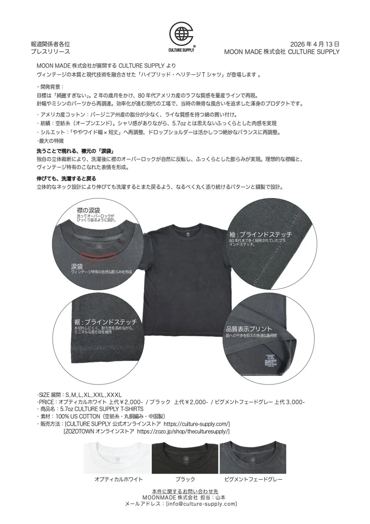 80年代アメリカのラフな魅力を現代によみがえらせた「ハイブリッド・ヘリテージTシャツ」が、MOON MADE株式会社のCULTURE SUPPLYより登場します。この新作Tシャツは「綺麗すぎない」をコンセプトに、2年間の開発を経て誕生し、ヴィンテージ感あふれる風合いと現代的な快適さを兼ね備えています。