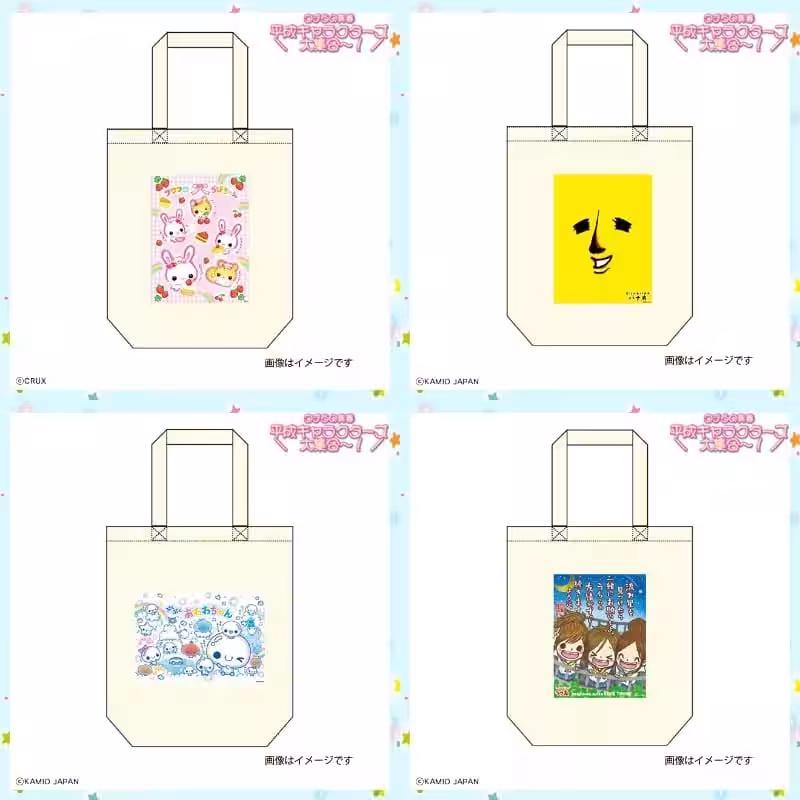 さらに、缶バッジも全8種類で440円(税込)。こちらもランダムですが、全種セットは3,520円(税込)で購入できます。サイズはφ57mm、素材はブリキと紙です。トートバッグは全4種で、各2,420円(税込)。A4サイズが入るポリエステル製で、日常使いにもぴったりです。