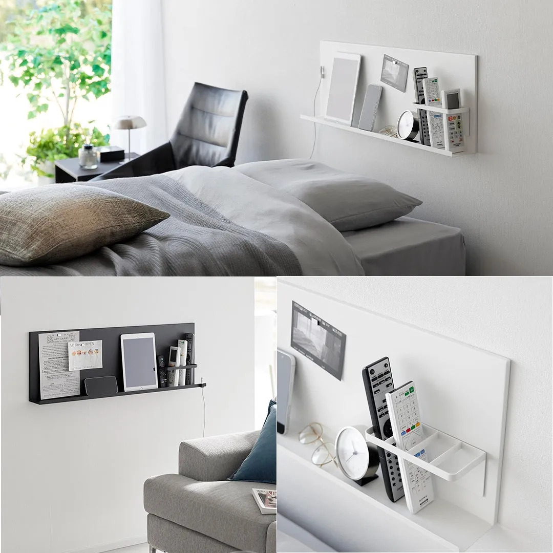 壁付けスチールパネル タワーも注目のアイテム。石こうボードピンで簡単に取り付けられるこのスチールパネルは、ベッドのヘッドボードやサイドボードとしても活用でき、リモコンやタブレットPCを手の届くところにすっきりと収納できます。マグネット式のリモコンホルダーも付属しており、カスタマイズ自由な点が魅力的です。トレー部分には滑り止めのマットが付いているので、収納物が傷つく心配もありません。