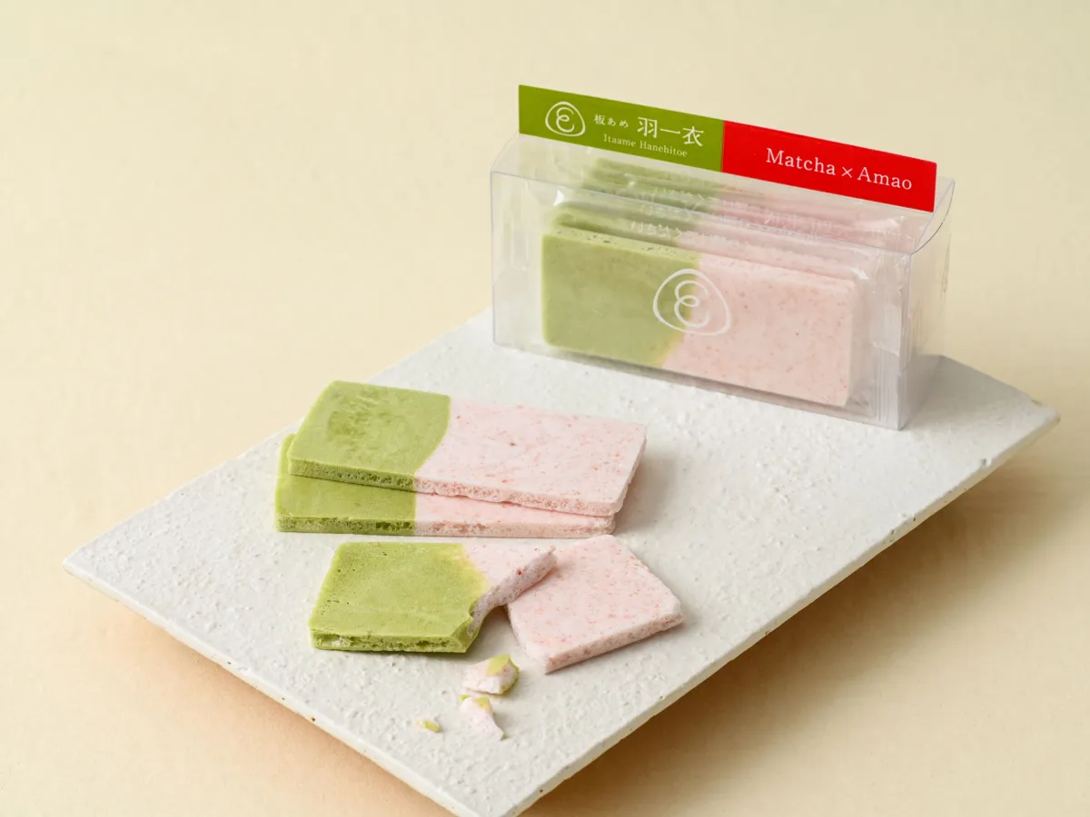 この春、株式会社榮太樓總本鋪より、あめ専門ブランド「あめやえいたろう」の新しい板あめ「羽一衣(はねひとえ)」シリーズに季節限定フレーバー「抹茶×あまおう」が加わります。発売は3月15日から、公式オンラインストアでは3月13日より受け付けがスタート。