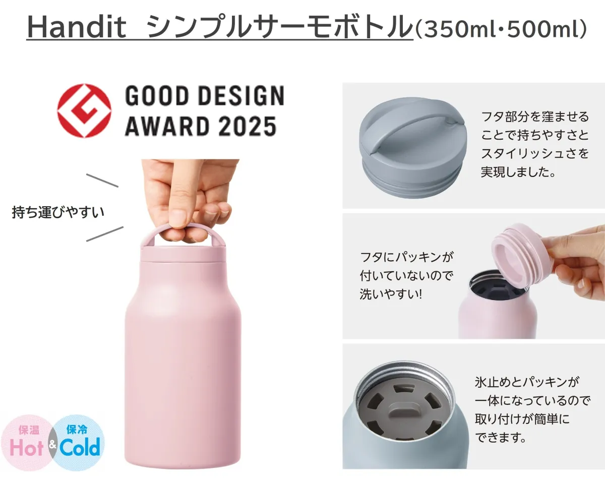 2025年度グッドデザイン賞を受賞したHanditシンプルサーモボトル