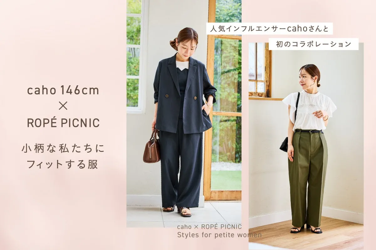 「ROPE' PICNIC」は、自身のスタイルに悩む方々が“ちょうどいい”と感じる服を提供するため、2024年春から小柄女性向けのサイズ展開を開始しており、多くの支持を集めています。このたびのコラボは、cahoさんの独自の視点が反映されており、小柄女性が求めるフィット感とデザインを兼ね備えています。