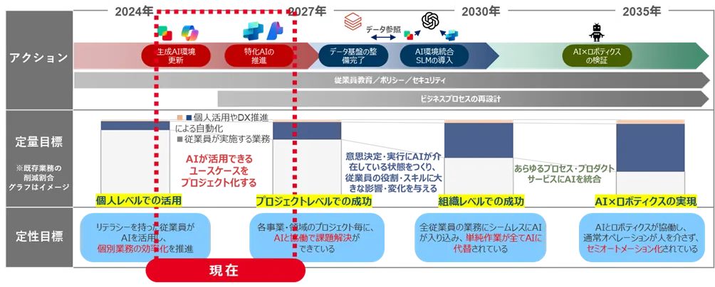 キリングループは、生成AIの利用促進に力を入れており、2025年には全従業員の70%がAIを活用することを目指しています。キリン本社では、その利用率はほぼ100%で、業務の生産性向上に寄与しています。AIによる業務の自動化率も10%を超えており、これは業務効率を大幅に改善する要因となっています。特に、AI活用に向けた教育プログラム「DX道場」には、累計で5,100名以上が受講しており、実践的な教育を強化しています。