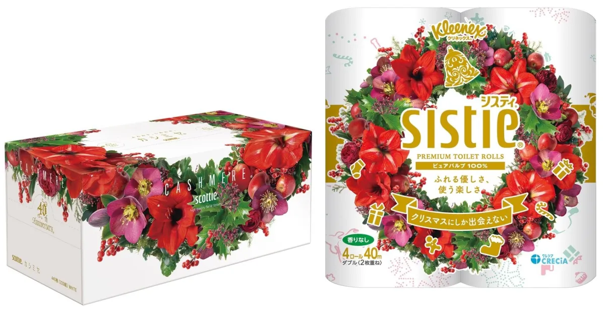 これらの商品は、数量限定で全国発売されるため、手に入れるならお早めに。『スコッティ カシミヤ クリスマス』は440枚入り、そして『クリネックス システィ クリスマス』は40メートルのダブルロールが4本入りです。