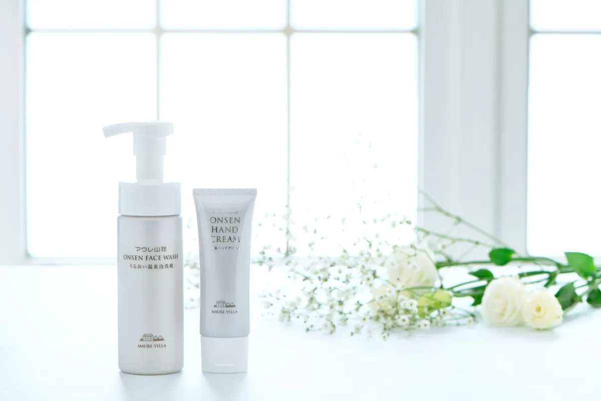 今回発売されるのは、「うるおい温泉泡洗顔」と「温泉ハンドクリーム」の2種類。両商品には、マウレ山荘の温泉水を使用しており、そのクレンジング作用と保湿成分が特徴です。特に、泡洗顔はきめ細やかな泡が優しく汚れを落とし、洗顔後も肌をしっとりと保ちます。