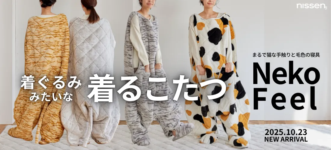 この新商品「着ぐるみこたつ」は、猫好き社員の会話から生まれました。「寒い冬、猫とくればこたつでしょ!」という社員の言葉から、今までにない発想が生まれ、製品化がスタート。これまでの着る毛布やこたつ掛布団に続く、新たなアイテムとして、猫のシルエットやしなやかな曲線を再現するために、開発チームは何度も試作を重ねてきました。