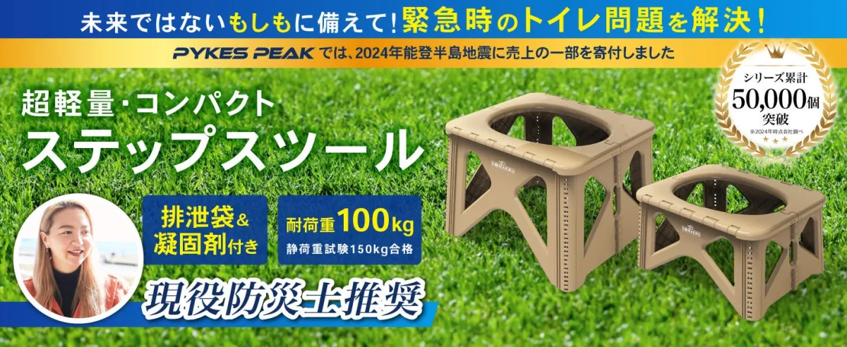 日々の生活から非常時の備えまで幅広く対応する「ステップスツールトイレ」は、PYKES PEAKが提案する新しいライフスタイルの一部です。「Enjoy Your Life!」を掲げる同ブランドは、今後も防災用品の開発を通じて、私たちの安心で安全な生活をサポートしていくことでしょう。