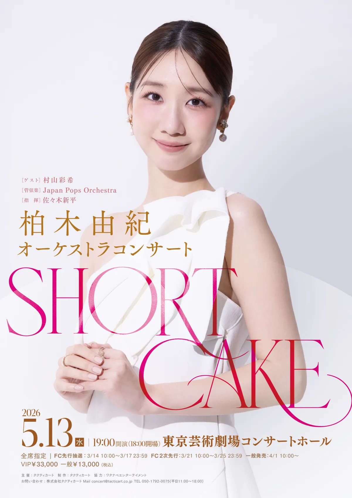 2026年5月13日(水)、東京芸術劇場コンサートホールにて、アイドルとしての地位を確立し、現在はソロアーティストとしても輝きを放つ柏木由紀によるオーケストラコンサート「SHORT CAKE」が行われます。この公演では、特別にアレンジされた楽曲や、これまでの彼女の名曲をフルオーケストラの演奏とともに楽しむことができる貴重な機会となっています。