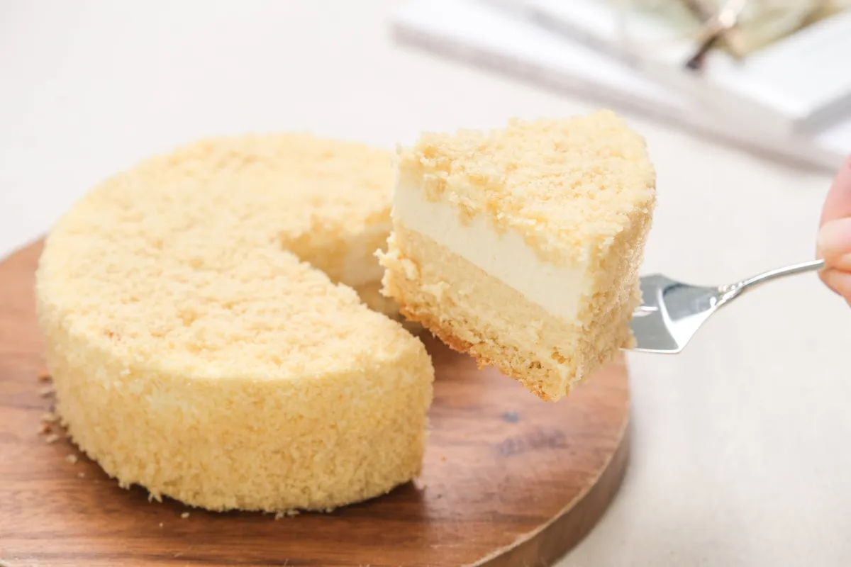 この特別なチーズケーキの魅力は、そのユニークな二層仕立てにあります。上段には濃厚なベイクドチーズがふんだんに使用されており、口に入れるととろりとした贅沢な味わいが広がります。一方、下段にはレアチーズが配されており、なめらかで軽やかな口当たりが特徴です。このふたつの異なる食感が絶妙に重なり合い、食べるたびに新たな感動を与えてくれます。