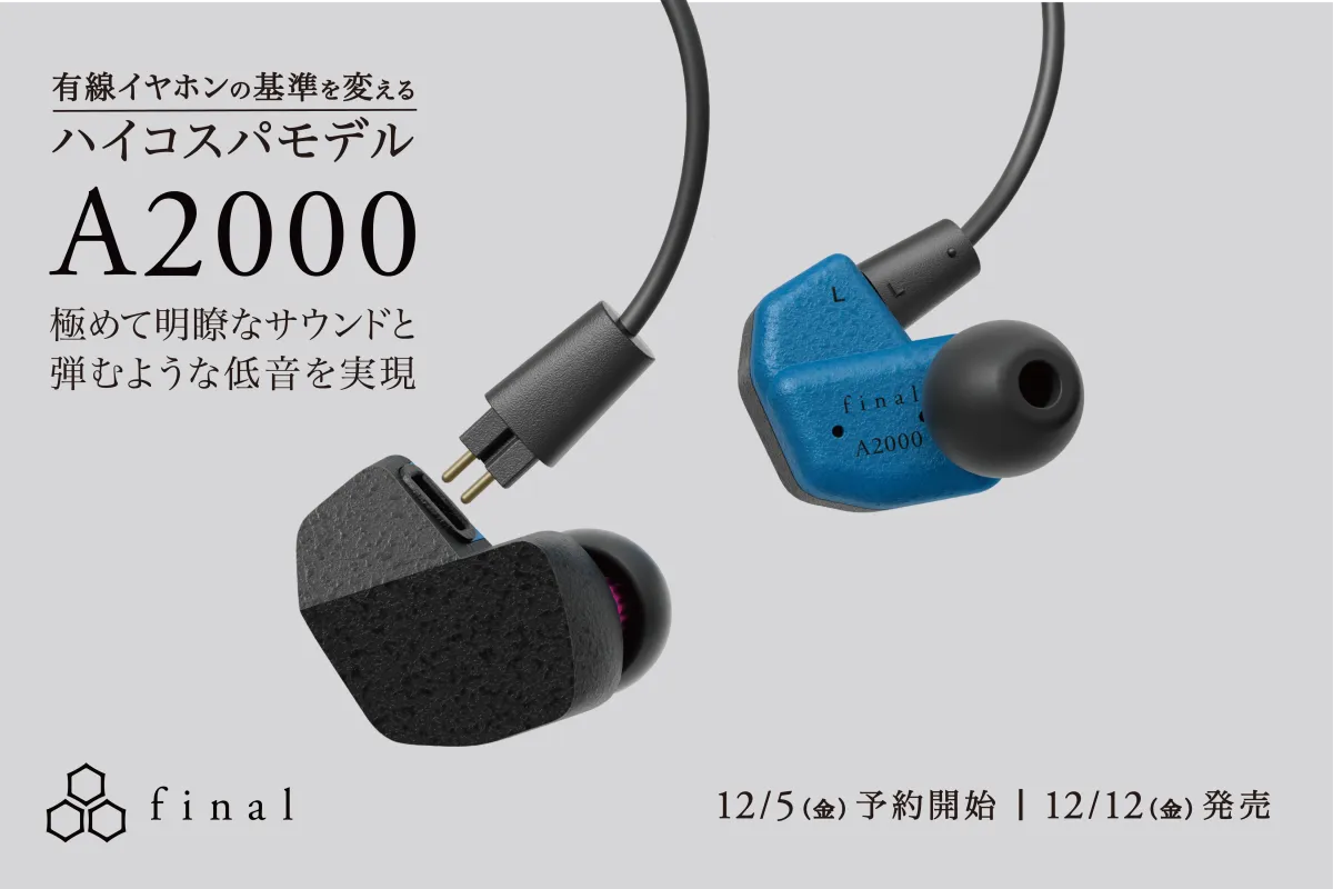 国内オーディオメーカー、株式会社finalから待望の有線イヤホン「A2000」が、2025年12月5日より予約がスタートし、12月12日からの発売が正式に決定しました。このモデルは、これまでの有線イヤホンの基準を再考させるほどの高コストパフォーマンスを実現しています。